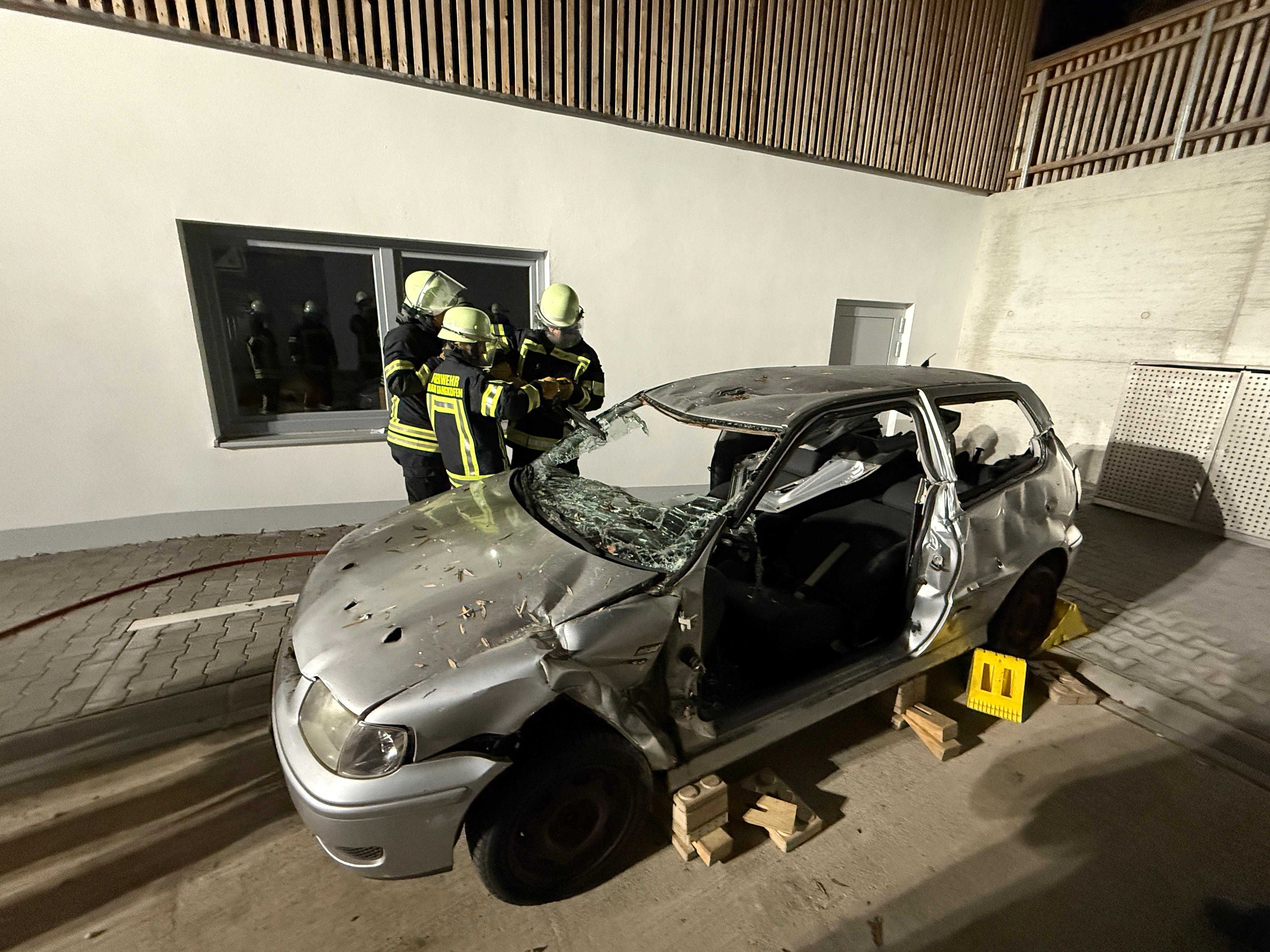 Bei den letzten beiden Übungen ging es um die Technische Hilfeleistung bei einem Verkehrsunfall mit eingeklemmter Person.