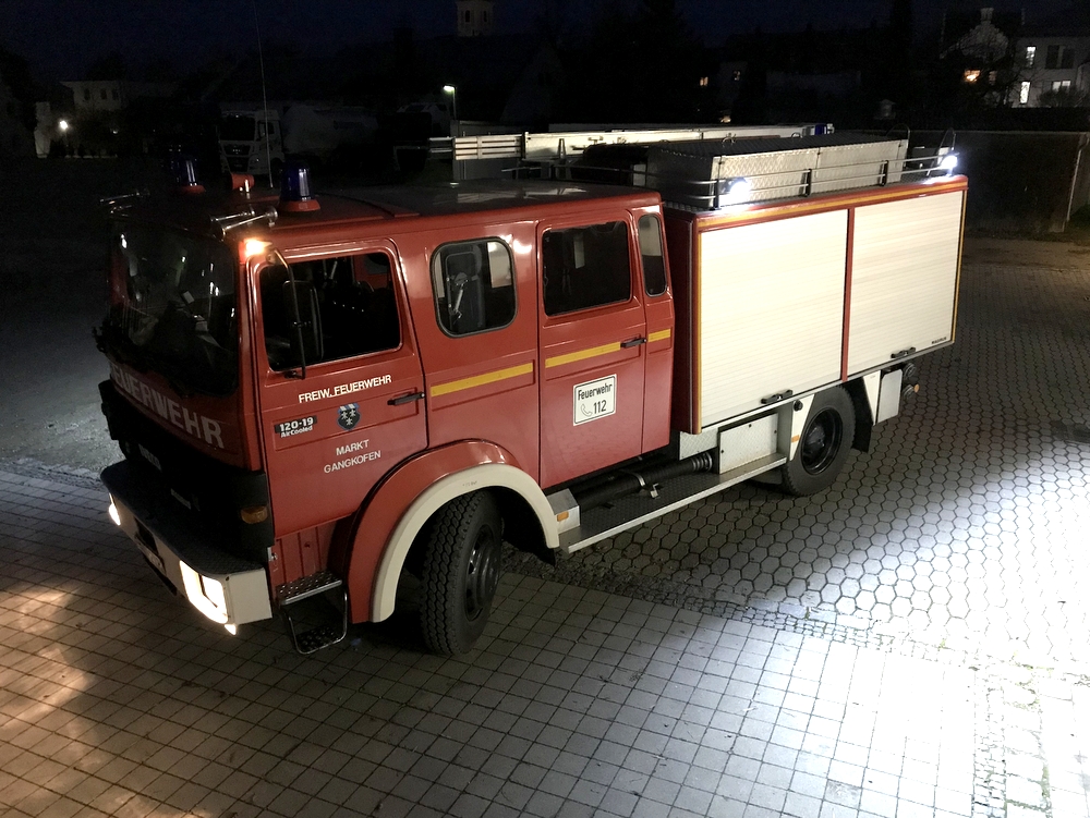 Trotz seines fortgeschrittenen Alters ist jetzt auch unser TLF wieder mit einer modernen Umfeldbeleuchtung ausgestattet. Insgesamt fünf Nahfeld-LED-Scheinwerfer mit je 16.000 Lumen sorgen nun auch bei Dunkelheit wieder für gute Sichtbarkeit rund um das Fahrzeug. Da unser Tanklöschfahrzeug bei Unfällen auch oft zur Verkehrsabsicherung eingesetzt wird, dient eine gute Beleuchtung auch der besseren Erkennung der Unfallstelle sowie der Einsatzkräfte bei Nacht.