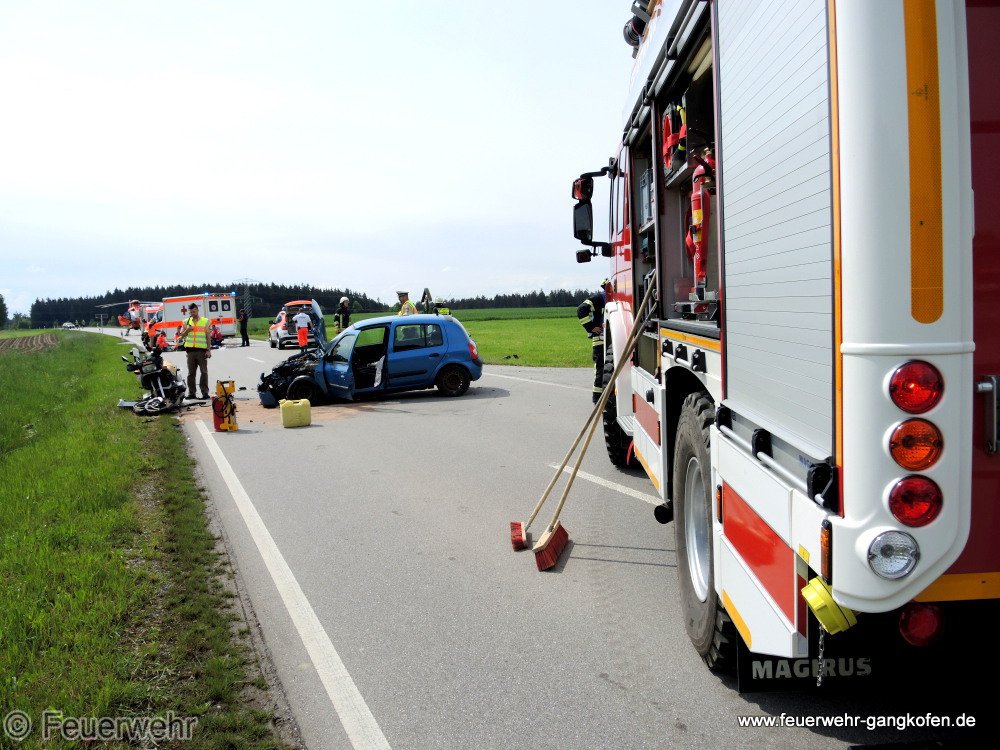 Die FF Gangkofen band auslaufende Betriebsstoffe, unterstütze den Rettungsdienst und baute eine Verkehrsabsicherung auf. Die FF Hörbering wurde nachalarmiert um den Verkehr der anderen Seite umzuleiten.