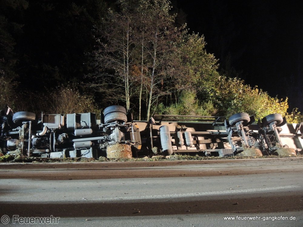 Einsatzleitung und Polizei entschieden, den verunfallten LKW über die Nacht so liegen zu lassen. Die Bergung erfolgte dann am darauffolgenden Tag. Von der Feuerwehr wurde die Straße gereinigt, Der Straßenbaulastträger sicherte die Unfallstelle ab.