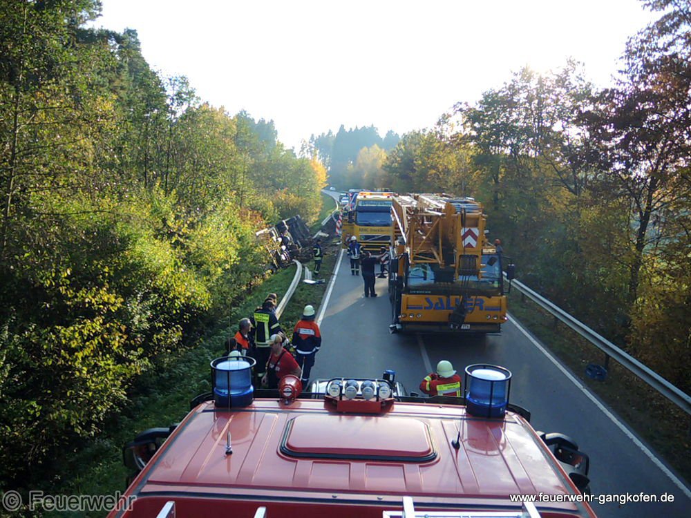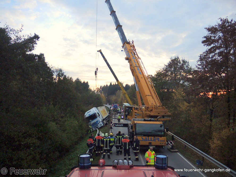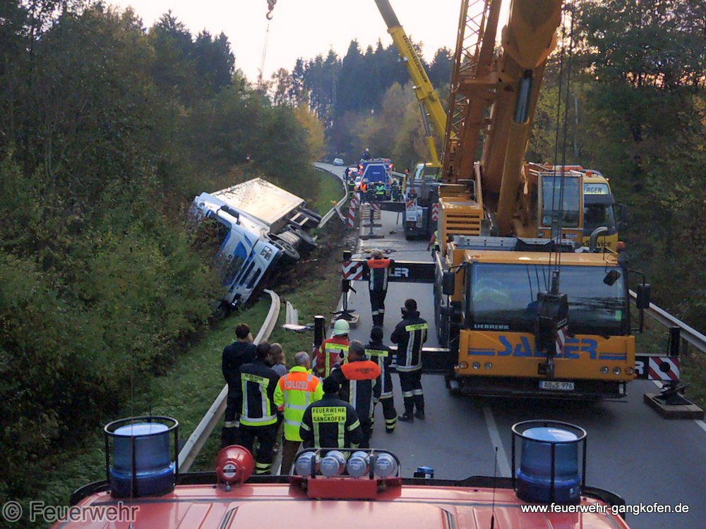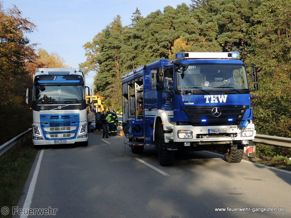 Hilfestellung bei der Bergung des LKW in Zusammenarbeit mit dem THW Eggenfelden und der FF Panzing.