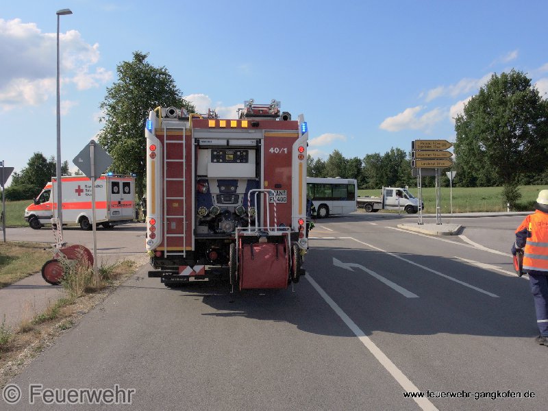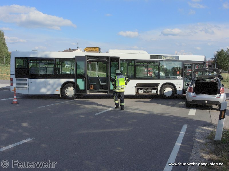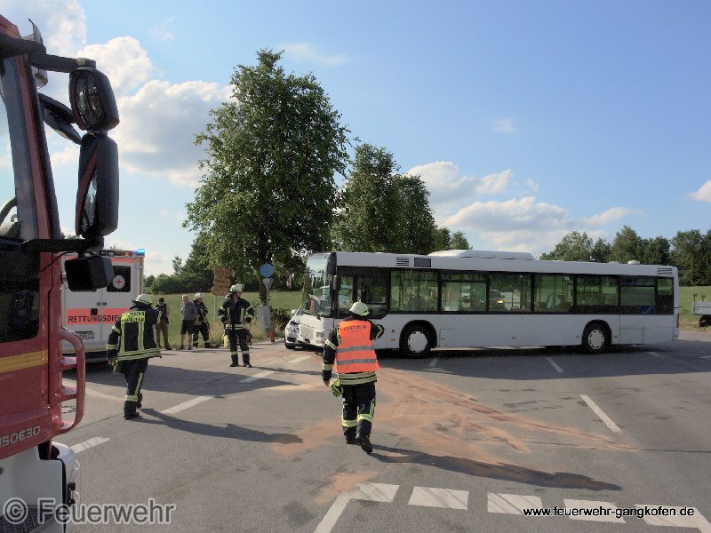 An der Kreuzung Frontenhausener Straße und Industriegebiet kollidierten ein Bus und ein PKW. Glücklicherweise waren keine Fahrgäste im Bus und der PKW Lenker nicht eingeklemmt. Die FFW Gangkofen säuberte die Straße und regelten den Verkehr.