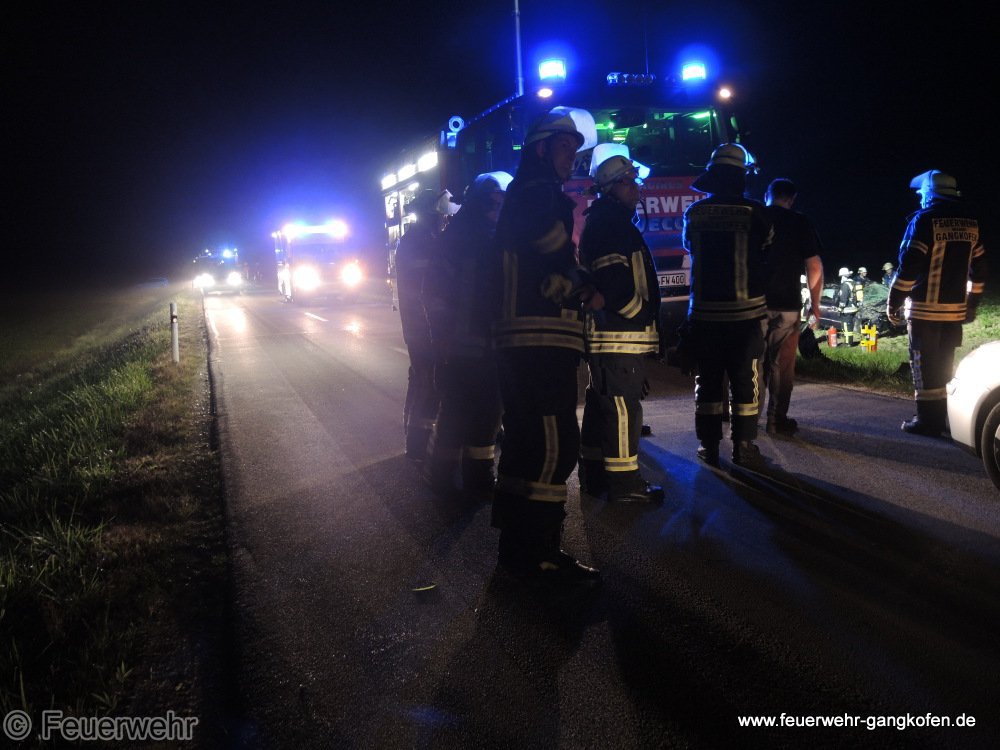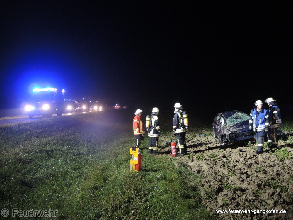 Auf der PAN 32 auf Höhe Uttendorf hat sich ein PKW mehrfach überschlagen. Die eingeklemmte Fahrerin konnte bis zu unserem Eintreffen aus dem Fahrzeug befreit werden und wurde vom BRK versorgt. Die Feuerwehr leuchtete die Unfallstelle aus und regelte den Verkehr.