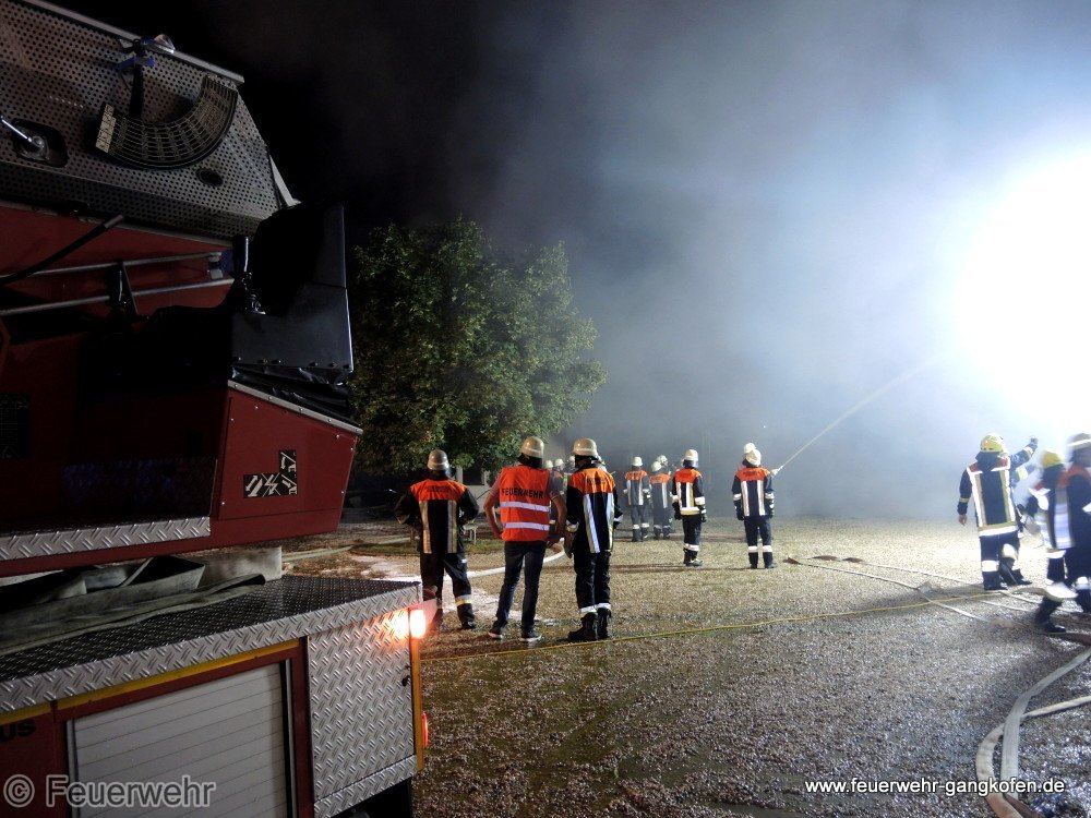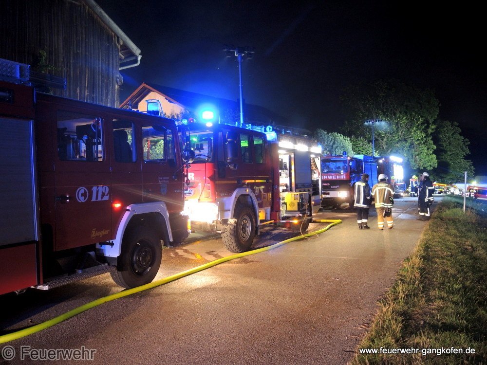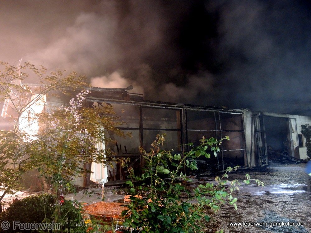 In einer landwirtschaftlich genutzten Halle brach in der Nacht ein Feuer aus und griff schnell auf das gesamte Gebäude über. Nur durch das Eingreifen der zahlreichen Einsatzkräfte konnte verhindert werden, dass die Flammen auch auf den angrenzende Stall und das Wohnhaus überschlugen.