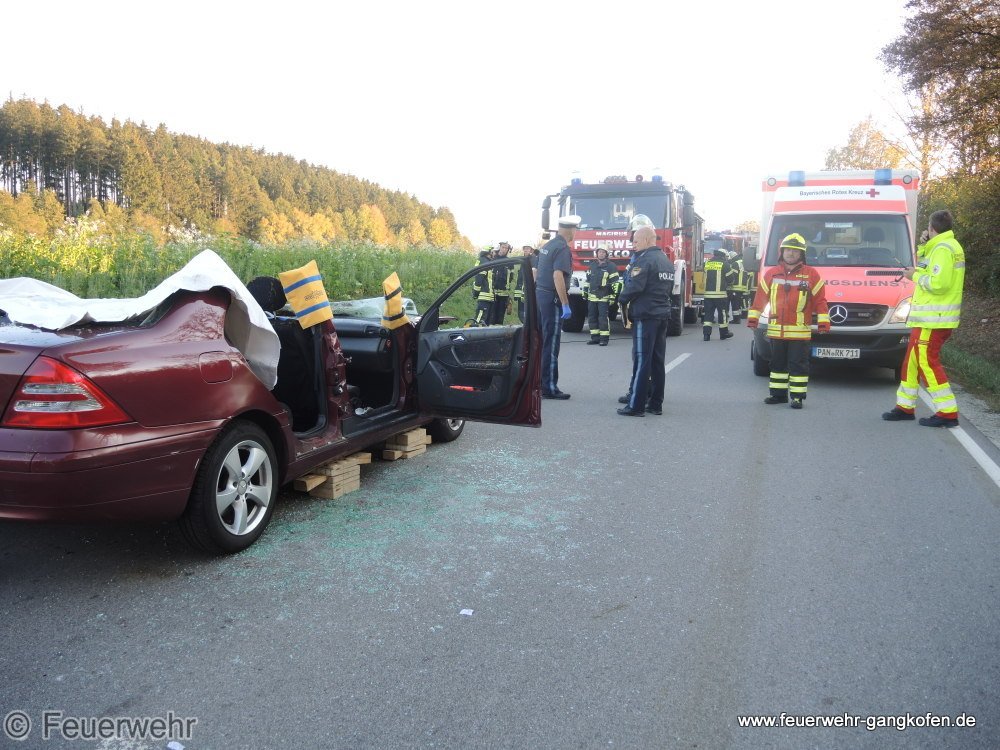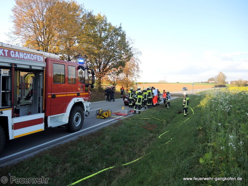 Auf der Staatsstraße 2111 kam es zu einem Zusammenstoß zwischen einem PKW und zwei Pferden. Dadurch wurde der PKW Fahrer durch das deformierte Dach im Fahrzeug eingeklemmt. Zusammen mit der Feuerwehr Hörbering entfernten wir das Dach, um die eingeschlossene Person zu befreien. Anschließend wurde die Fahrbahn gereinigt.