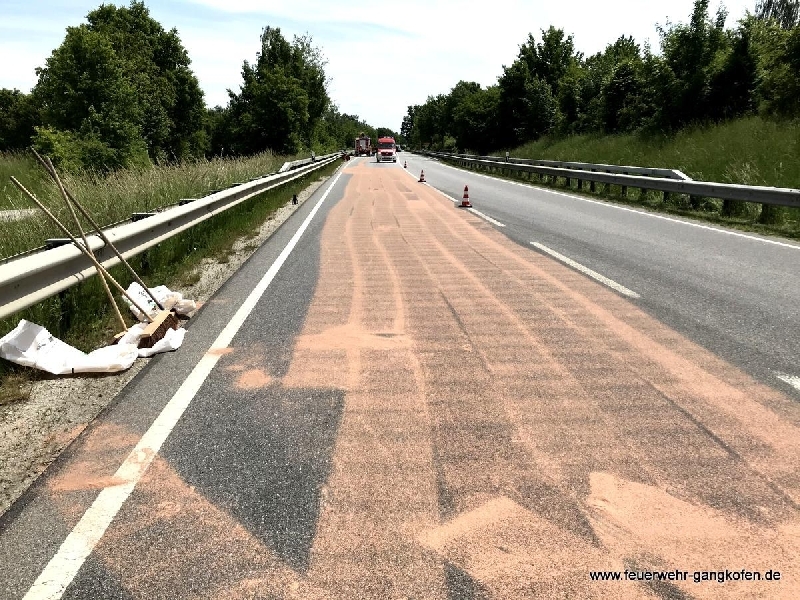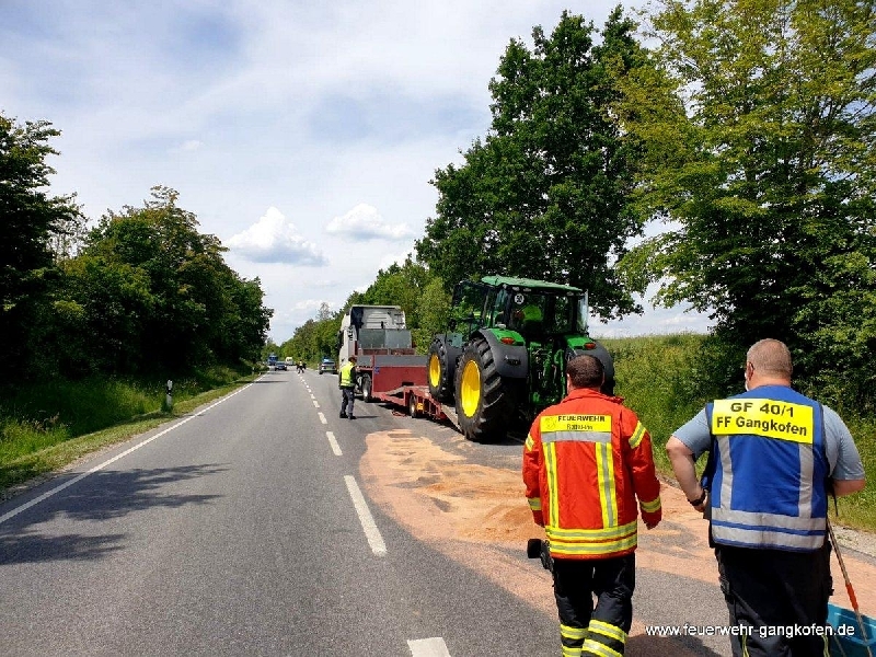 Zunächst wurde die Feuerwehr Panzing zu einer Ölspur alarmiert. Am Einsatzort eingetroffen stellte sich heraus, dass sich die Ölspur jedoch auf ca. 6 km Länge verteilte.