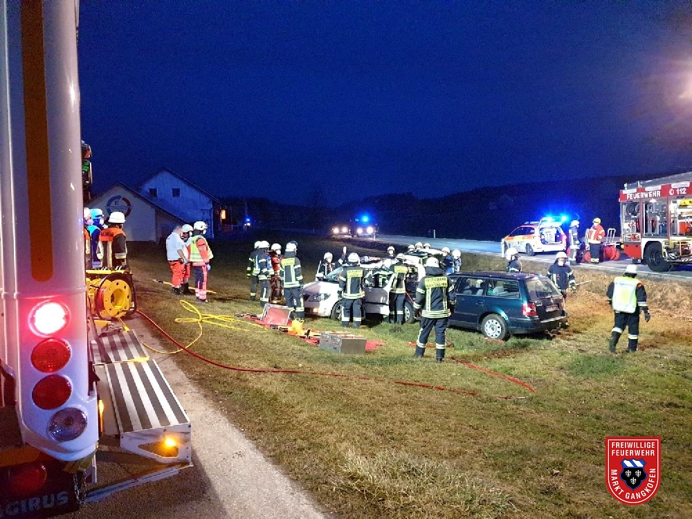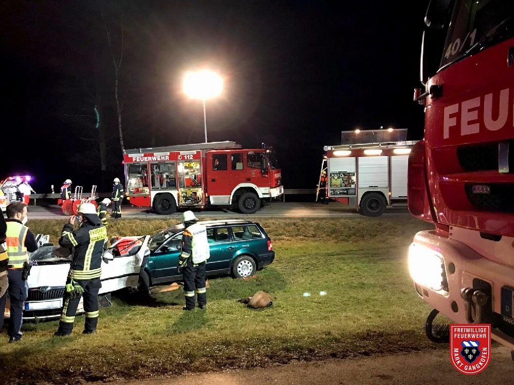 Wir wurden zu einem Verkehrsunfall mit drei verletzten Personen nachgefordert. Am Einsatzort eingetroffen wurden die Insassen bereits vom Rettungsdienst versorgt. Zur patientenschonenden Rettung wurde in Zusammenbarbeit mit der Feuerwehr Falkenberg das Dach entfernt, dabei übernahmen wir die vom gegnerischen Unfallfahrzeug deformierte Fahrerseite. Das MZF unterstütze während dessen bei der Verkehrsabsicherung.