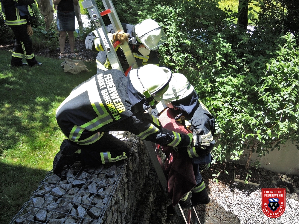 Ein Rehkitz ist in einen 2,5 m tiefen Lichtschacht gefallen und konnte sich selbst nicht mehr aus seiner Lage befreien. Mittels eines Steckleiterteils ging ein Trupp mit Decken vor und fing das aufgeregte Tier ein. Nach Absprache mit dem zuständigen Jagdpächter wurde das Rehkitz in ein nahegelegenes Waldstück gebracht und freigelassen.