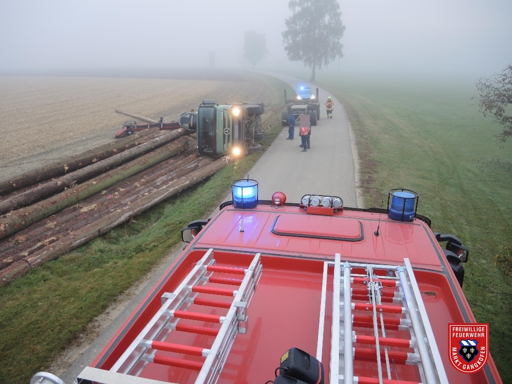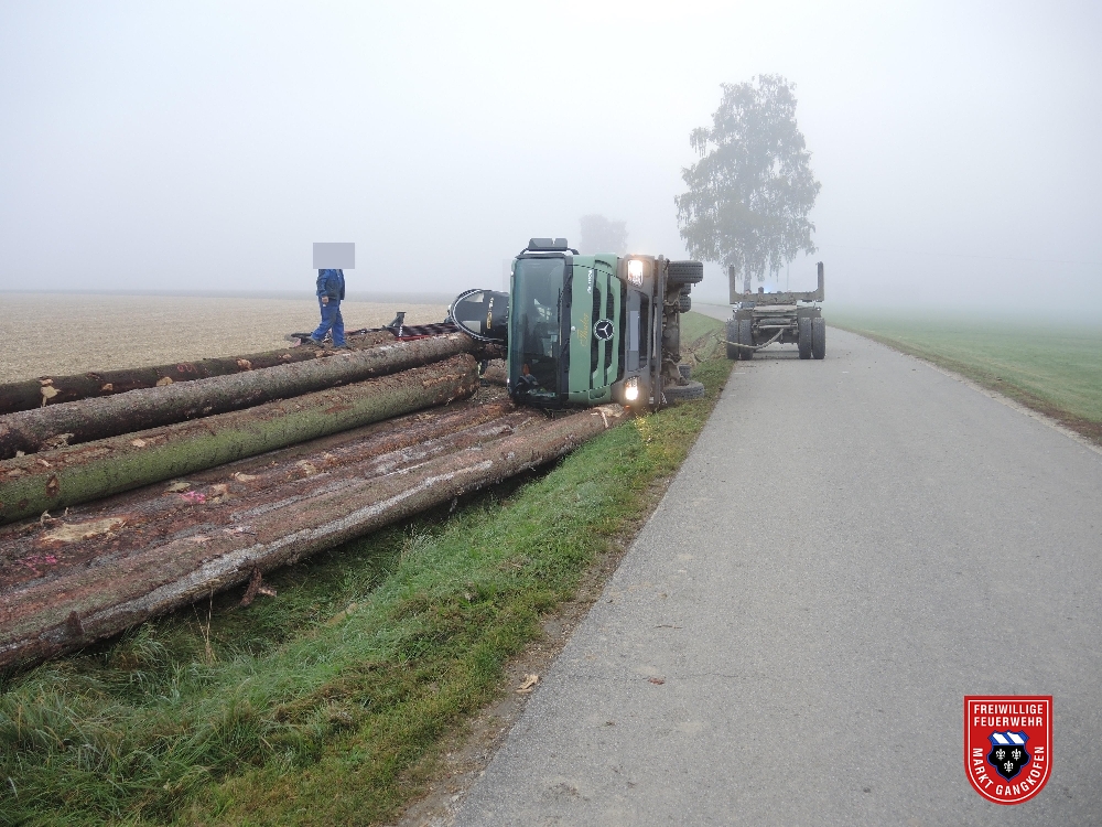 Ein Langholz-Transporter kippte währed des Aufladens um, in Folge dessen trat Diesel aus dem Kraftstofftank aus. Die örtlich zuständige Feuerwehr Panzing übernahm die Verkehrsabsicherung, die Besatzung des HLFs verhinderte einen weiteren Austritt des Kraftstoffes in das Erdreich. Durch ein Bergungsunternehmen wurde der LKW aufgestellt und abgeschleppt.