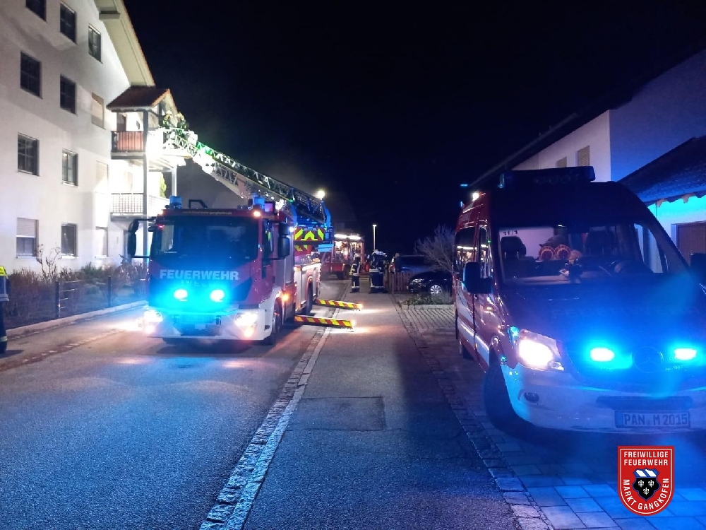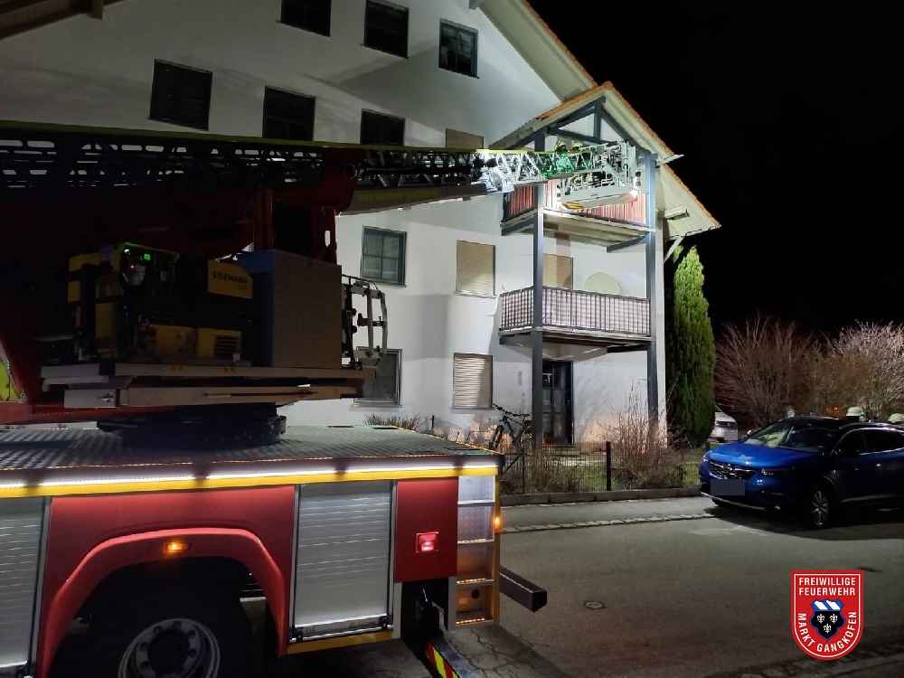 Die Leistelle Passau alarmierte uns zusammen mit der örtlich zuständigen Feuerwehr Massing und Wolfsegg zu einem gemeldeten Zimmerbrand in einem Mehrfamilienhaus. An der Einsatzstelle angekommen, war bereits ein Atemschutztrupp der Feuerwehr Massing im Innenangriff zur Personensuche und Brandbekämpfung. Zwei Atemschutzgeräteträger unseres TLFs rüsteten sich aus und drangen über die Drehleiter in eine Wohnung im zweiten Obergeschoss vor, um diese nach vermissten Personen zu durchsuchen. Glücklicherweise konnten hier jedoch keine Personen mehr angetroffen werden.