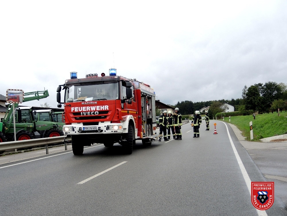 Unser HLF wurde zu einem Verkehrsunfall mit eingeklemmter Person auf der Bundesstraße B388 Höhe Schernegg als zweiter Rettungssatz angefordert. Die Meldung des Unfalls erfolgte in diesem Fall automatisch über das eCall-System eines der beteiligten Fahrzeuge.