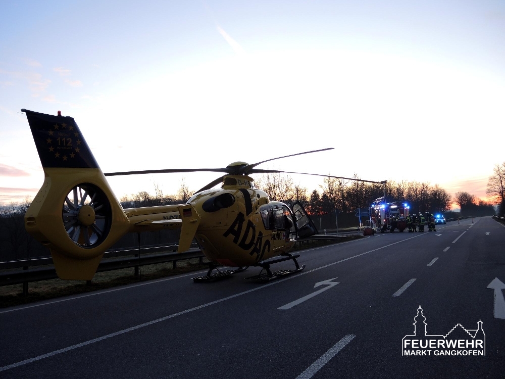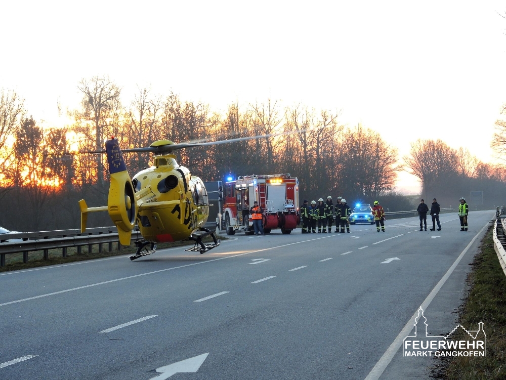 Wir sperrten zusammen mit der Feuerwehr Panzing die Bundesstraße komplett ab, übernahmen die Erstversorgung des verletzten Fahrers und banden auslaufende Betriebsmittel.