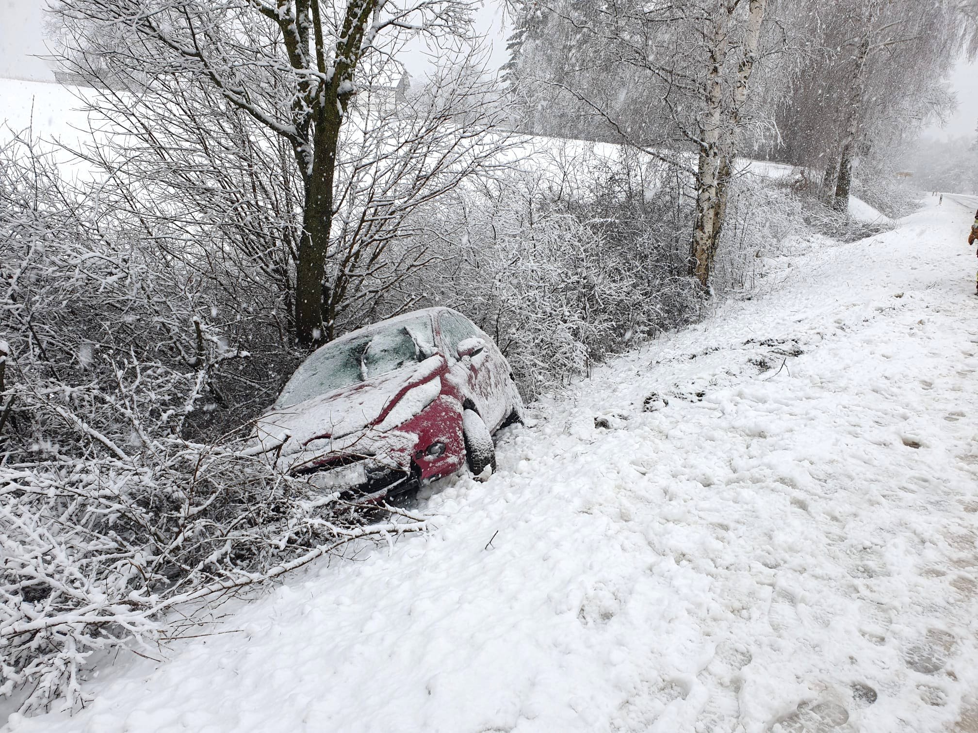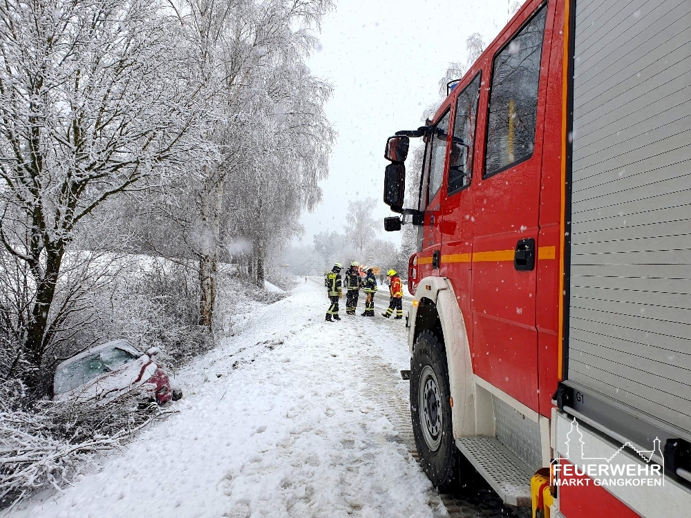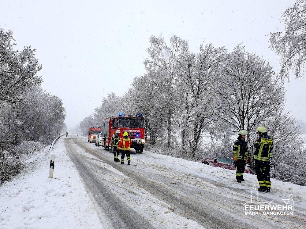 Eine PKW-Fahrerin kam Höhe Schöfthal witterungsbedingt von der St2111 ab und rutschte mit dem Fahrzeug in den Graben gegen einen Baum, dabei wurde sie leicht verletzt.