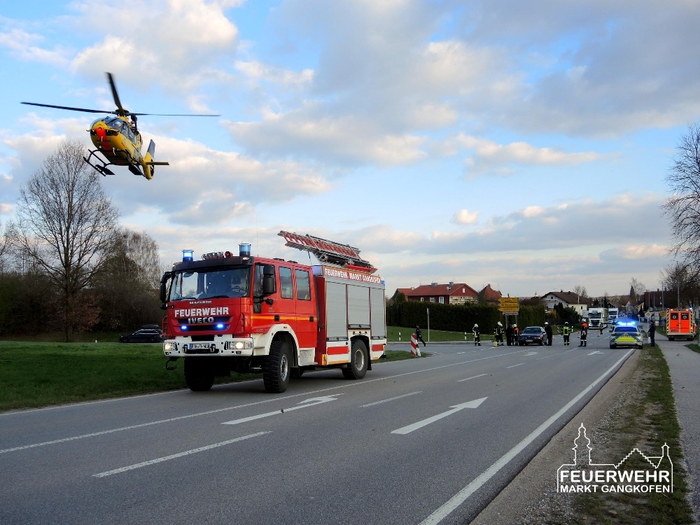 Im Kreuzungsbereich des Industriegebiets Gangkofen stießen zwei PKW zusammen. Eine Fahrerin erlitt dabei einen Schock und musste medizinisch betreut werden, der Notarzt wurde dazu vom Rettungshubschrauber Christoph 15 eingeflogen. Wir regelten in Zusammenarbeit mit der Feuerwehr Seemannshausen den Verkehr um die Unfallstelle und reinigten die Straße.