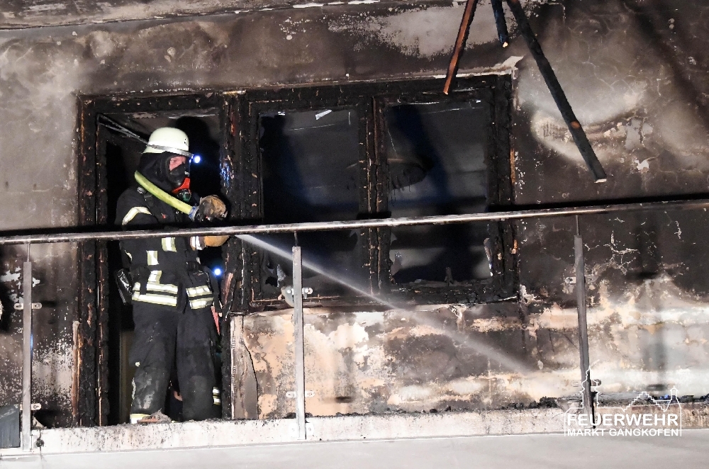 Angefordert durch die Leitstelle Traunsteine, alarmierte die ILS Passau unsere Drehleiter zusammen mit einigen anderen Feuerwehren zu einem brennenden Gasgrill auf dem Balkon eines Mehrfamilienhauses.