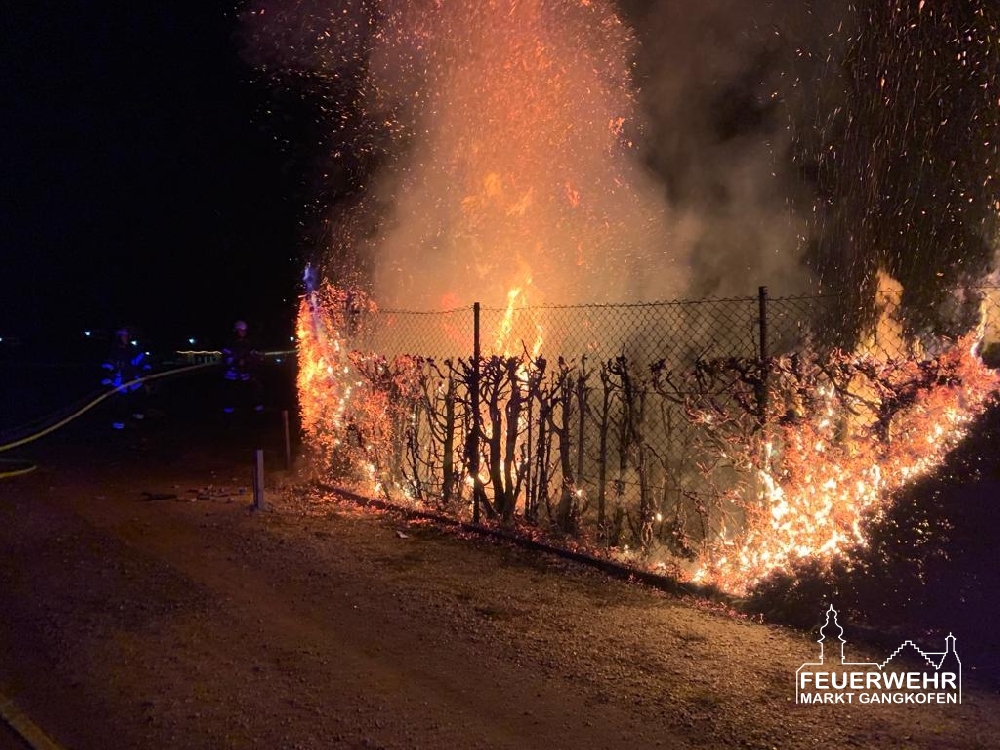Die Leitstelle Passau alarmierte uns zu einem Heckenbrand in der Waisenhausstraße. Bei unserem Eintreffen standen ca. 10 m einer Thujenhecke in Vollbrand, in unmittelbarer Nähe befand sich auch ein Stromverteilerkasten.