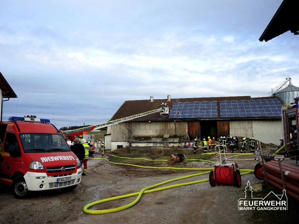 Während ein Trupp unter Atemschutz von innen versuchte, an den Brandherd zu gelangen, wurde von außen die Drehleiter in Stellung gebracht. Durch das Öffnen der Dachhaut konnte der Brand schließlich schnell unter Kontrolle gebracht werden.