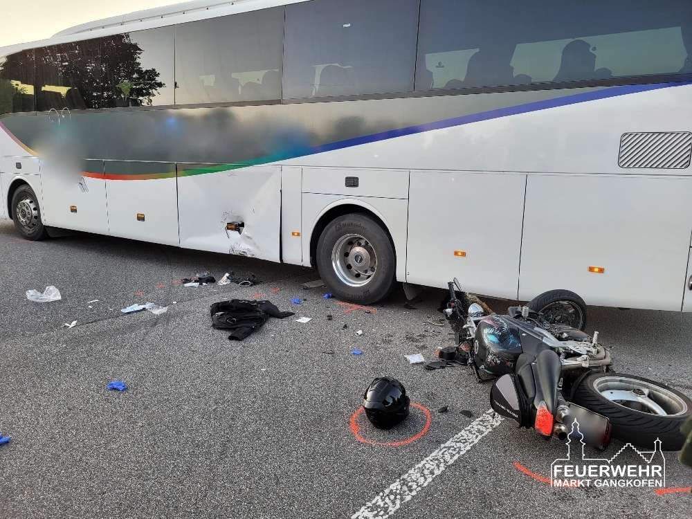 Am Dienstagmorgen wurden wir zu einem Verkehrsunfall zwischen einem Motorrad und einem Bus gerufen. An der Einsatzstelle regelten wir den Verkehr, banden auslaufende Betriebsstoffe und reinigten die Unfallstelle. Zusätzlich stellten wir einen Sichtschutz bereit.