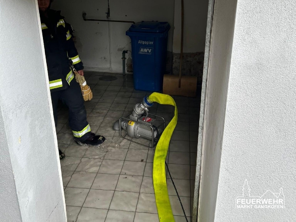 Aufgrund eines Unwetters war ein Keller mit Wasser vollgelaufen. Das Wasser wurde mittels Schmutzwasserpumpe entfernt.