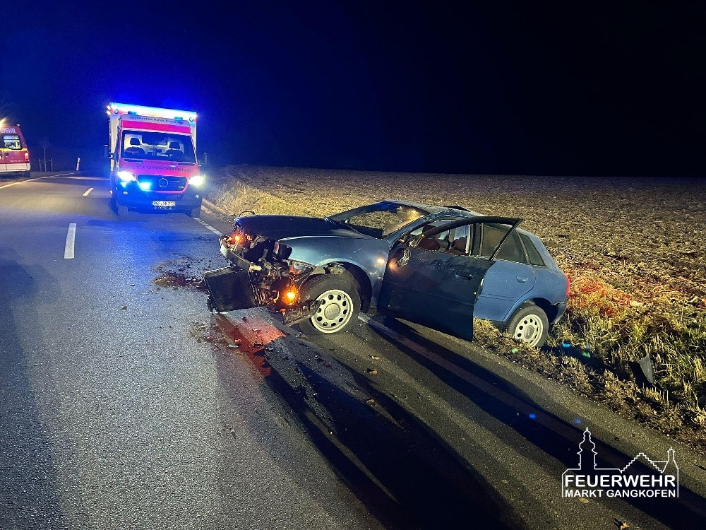 Auf der PAN34 von Gangkofen nach Reicheneibach kurz nach Sesselsberg kam ein PKW von der Fahrbahn ab und blieb im Graben stehen.