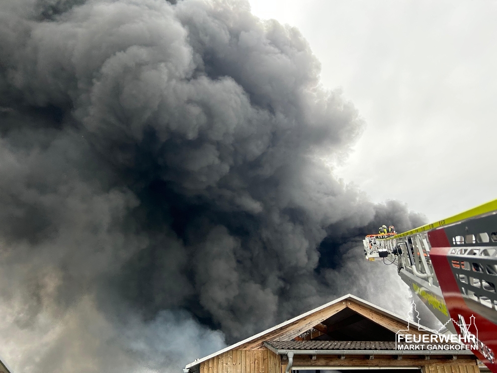 Am Freitagnachmittag wurden auch wir zum Großbrand nach Eggenfelden alarmiert. Bereits von Gangkofen aus war die gewaltige Rauchwolke deutlich sichtbar.