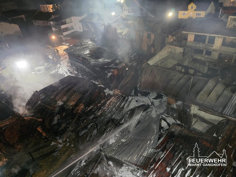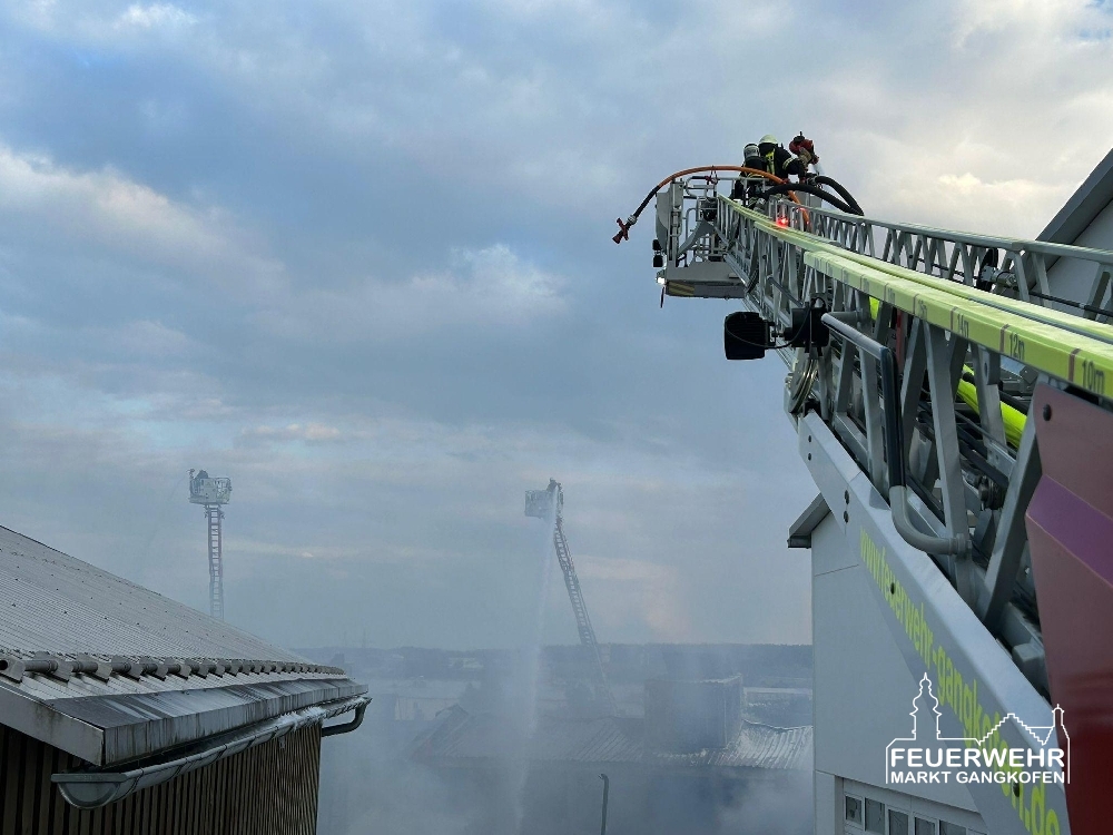 Vor Ort unterstützten wir mit unserer Drehleiter und unserem HLF bei der Brandbekämpfung an der Nordseite des Objekts. Die Besatzung unseres TLF brachte außerdem einen Wasserwerfer in Stellung, mit dem über mehrere Stunden hinweg ein massiver Löschangriff durchgeführt wurde. Darüber hinaus stellten wir zahlreiche Atemschutzgeräteträger, die während der gesamten Einsatzdauer unermüdlich eingesetzt wurden.