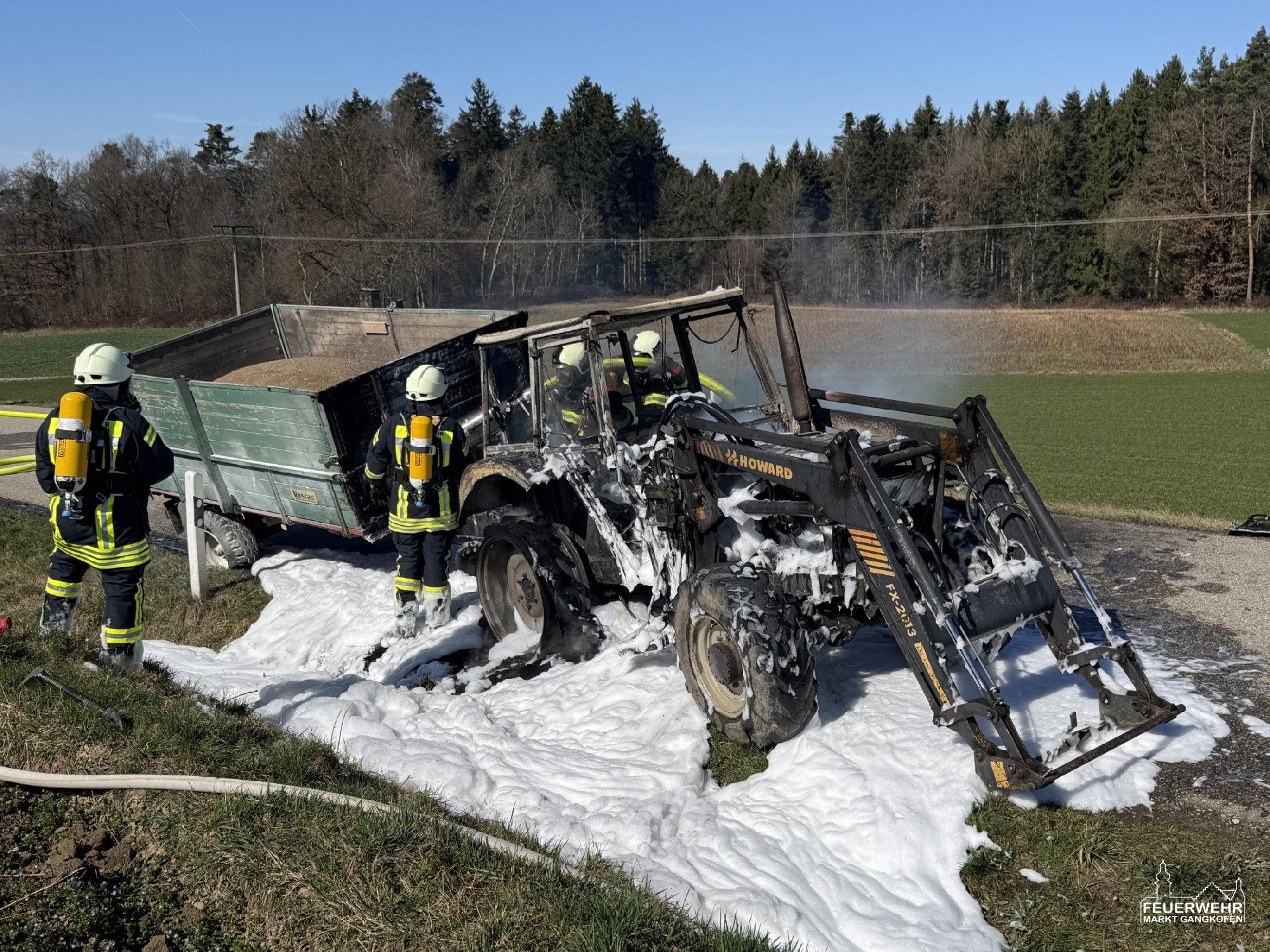 Auf der Gemeindestraße nach Geigenkofen kam es zum Brand eines Traktors.