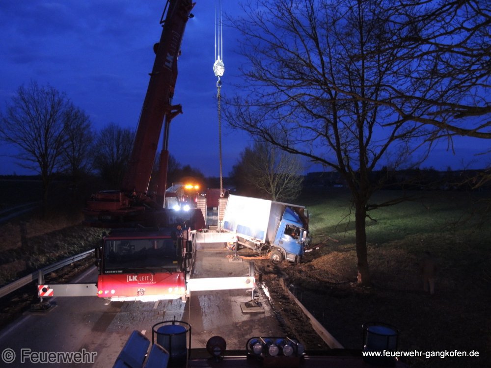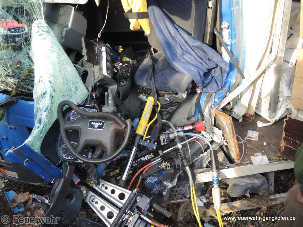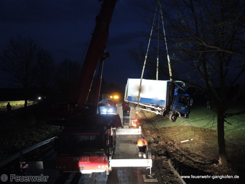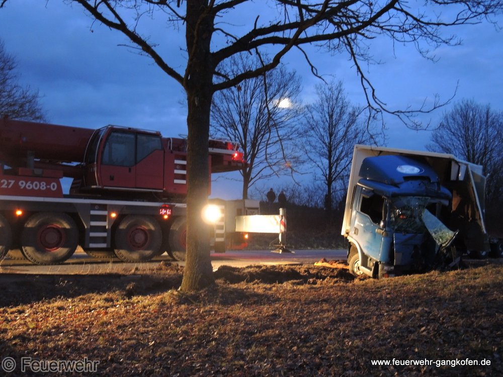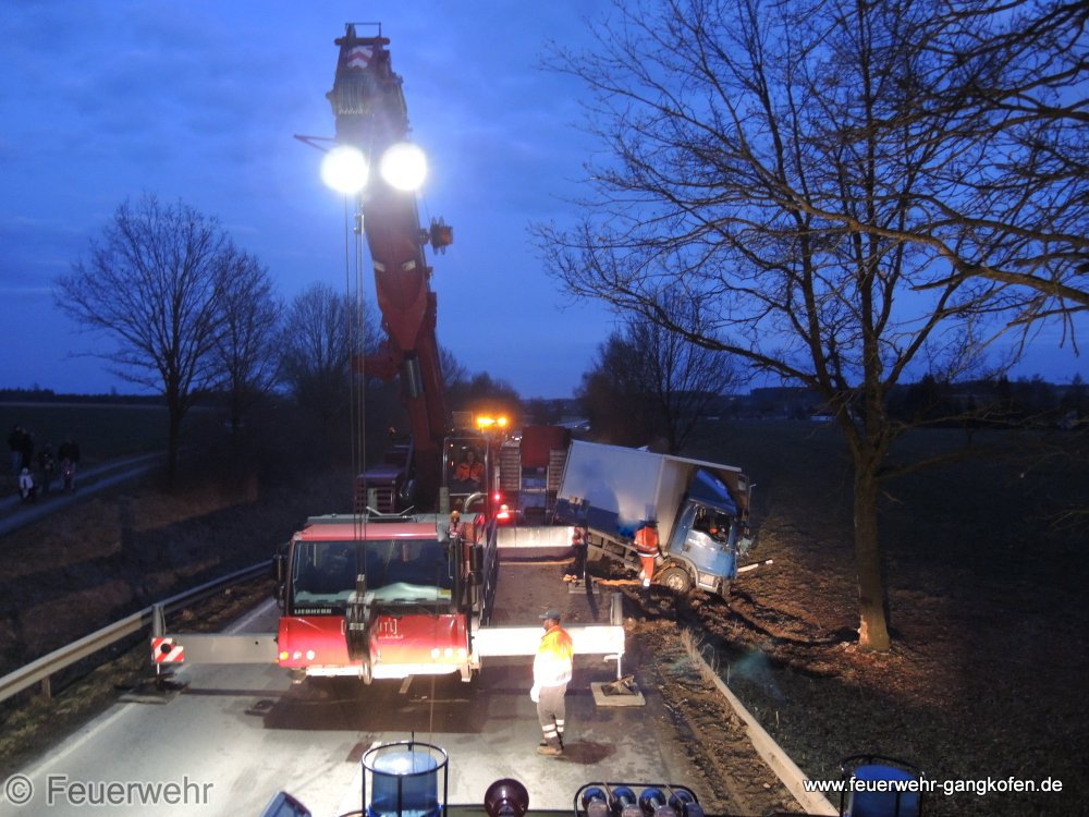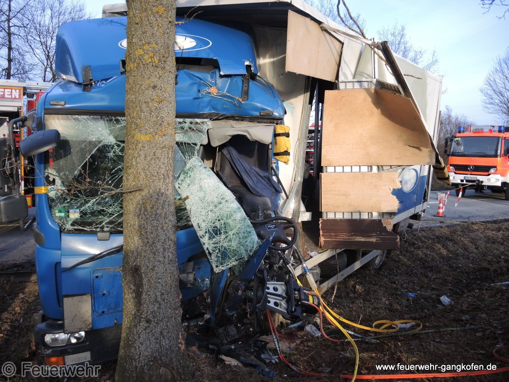 Ein schwerer Unfall hat sich am Mittwochnachmittag auf der B388 ereignet. Dabei wurde ein Lkw-Fahrer (44) aus dem Gemeindebereich Vilsbiburg (Landkreis Landshut) schwer verletzt und musste mit dem Hubschrauber ins Deggendorfer Klinikum geflogen werden.Der Lkw-Fahrer war gegen 16 Uhr auf der Bundesstraße 388 in Richtung Landshut unterwegs, als es auf Höhe Gangkofen zu dem Unfall kam. Zwei Zeugen hatten beobachtet, dass das Fahrzeug plötzlich auf die Gegenfahrbahn und aufs Bankett geraten und anschließend gegen einen Baum geprallt war. Das Fahrerhaus des Lastwagens wurde durch die Wucht des Aufprall völlig zusammengequetscht. Die Lenksäule fügte dem Fahrer schwerste innere Verletzungen zu, außerdem wurde er am Kopf und an den Beinen schwer verletzt.Die Bergung des Lkw-Fahrers gestaltete sich äußerst schwierig. Die angerückten Feuerwehren aus Panzing, Gangkofen, Massing und Eggenfelden mussten den Lastwagen äußerst vorsichtig mit Hilfe eines Stahlseiles ein Stück weit vom Baum wegziehen, damit Notarzt und Sanitäter einen ersten Zugriff auf den Verletzten hatten. Mit Rettungsscheren wurde dann das Fahrerhaus so weit aufgeschnitten, dass medizinische Erstversorgungsmaßnahmen möglich waren. Bis zur endgültigen Bergung des schwerst verletzten Mannes vergingen weitere 20 Minuten. Diese Zeit war aber nötig, um sein Leben nicht zu gefährden. Am Unfallort waren neben den Feuerwehren auch ein Einsatzleiter des Roten Kreuzes und Kreisbrandrat Hans Prex.