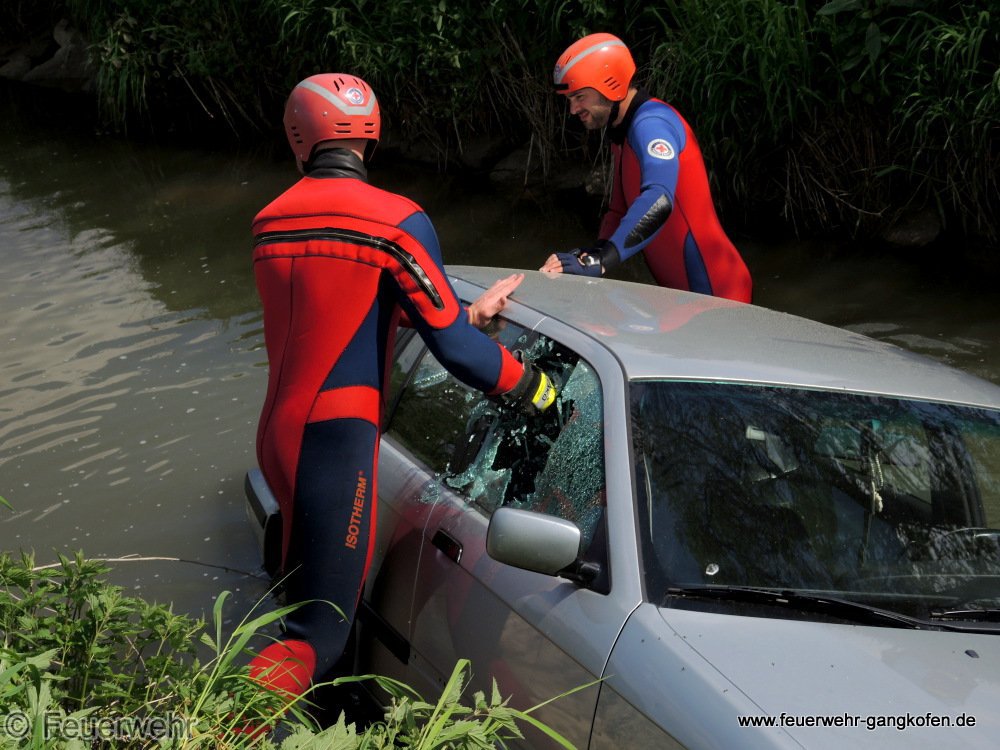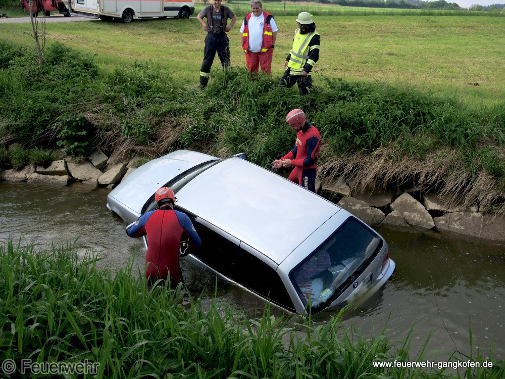 Ein PKW ist auf leicht abschüssigem Gelände in die Bina gerollt. Personen waren keine in Gefahr als Feuerwehr, Rettungsdienst und Polizei eintrafen.
