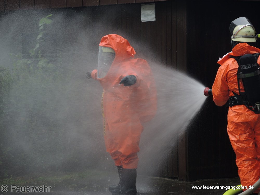 Eine undichte Chlorgas-Flasche hat am Mittwoch einen Großeinsatz der Feuerwehren zur Folge gehabt. Im Gangkofener Freibad war am Vormitag Alarm ausgelöst worden – verletzt wurde zum Glück niemand. Aufgrund der schlechten Witterung waren lediglich zwei Badegäste vor Ort.
