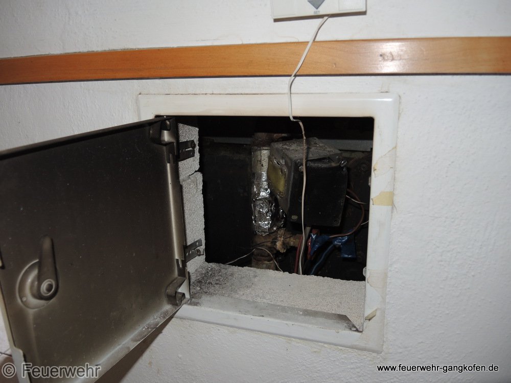 Zimmerbrand gemeldet. Kabelbrand, durch Kurzschluss ausgelöst, festgestellt.